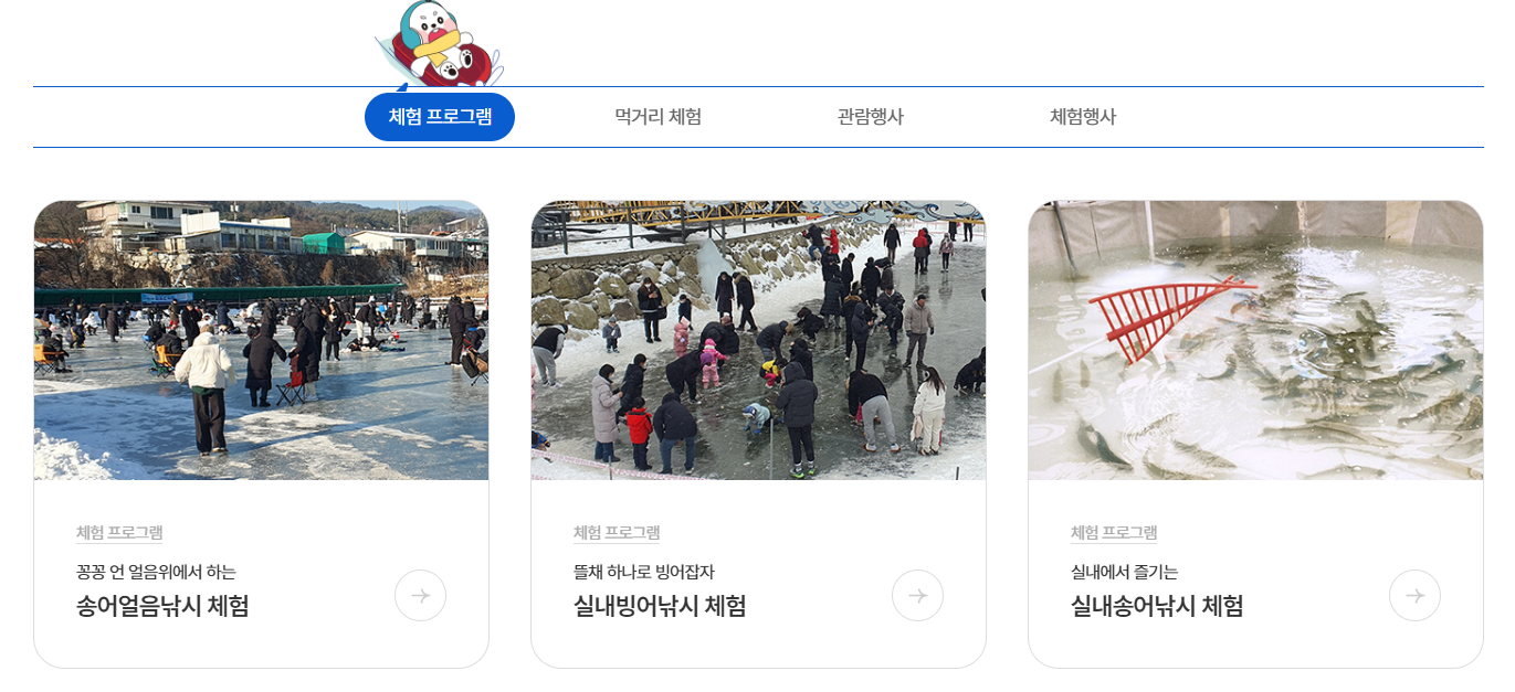 - 얼음낚시 : 포천 백운계곡 동장군축제에서 송어 얼음낚시를 체험하며 잊지 못할 추억을 만들어보세요.